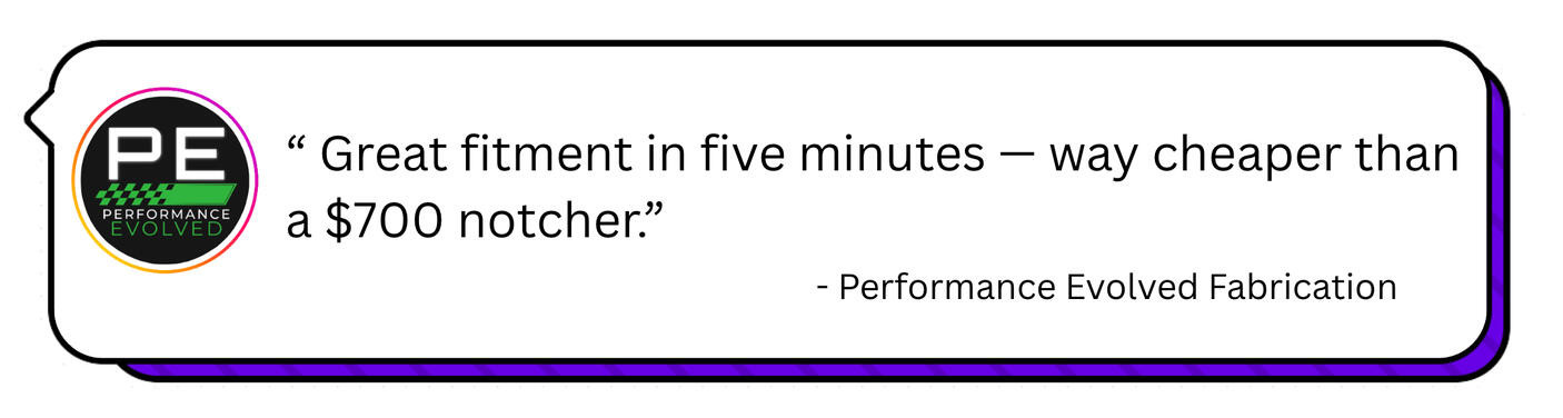 PRO Fitment Suite –6 notching kits for same‑diameter tubes. Perfect for cages, bumpers, and simple frames in a tiny garage.