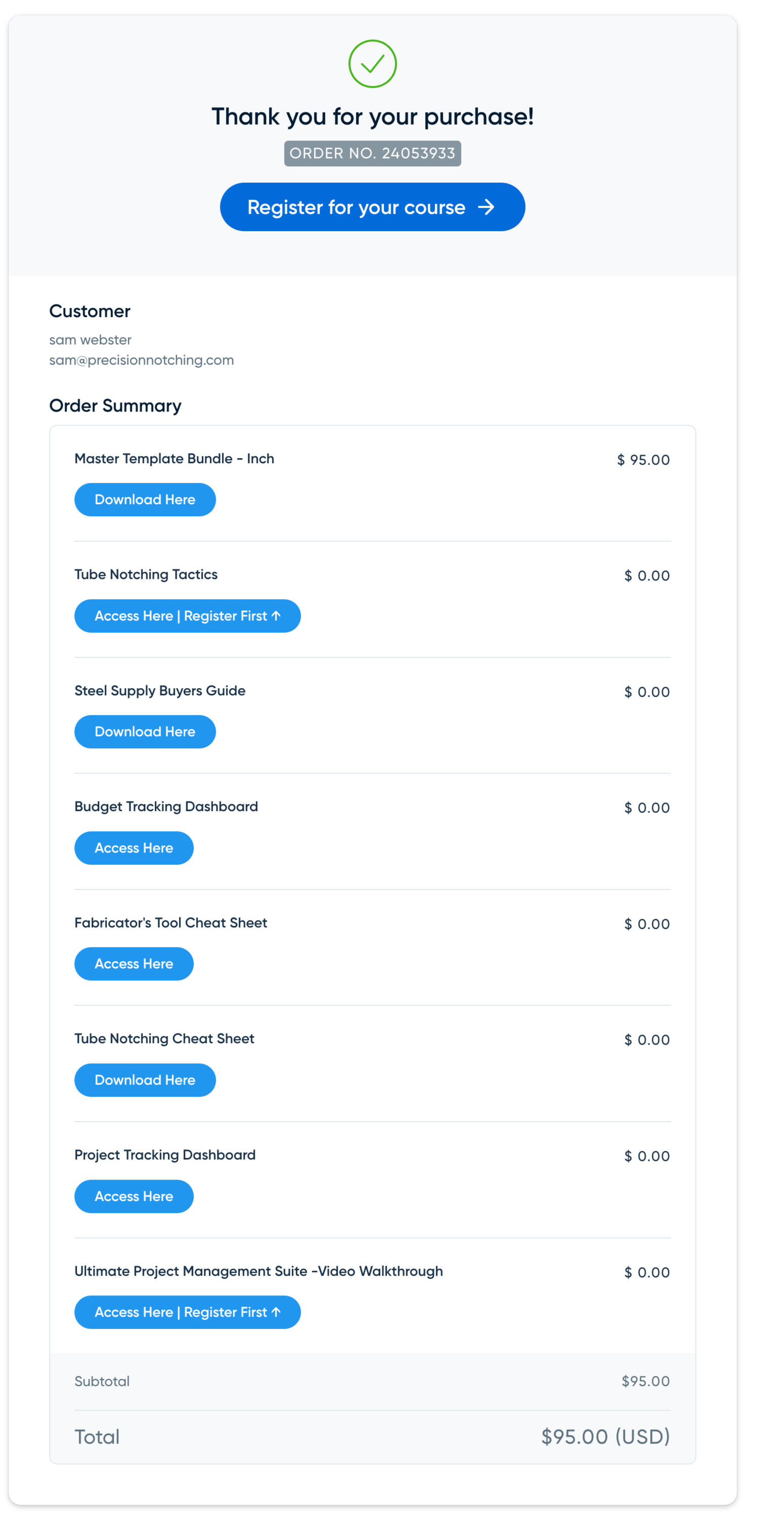 The bonus items alone are worth more than the price of this Master Bundle right now. And believe me when I say that they will help save you lots of headache.Their sole purpose is to get you up and running as fast as possible. And if you are like me, it can be hard to find time to work on projects and still balance work, family, friends, and other responsibilties.If you add in the cost of the the 21 notching kits, the total would come to a whopping $615 out the door...So, even though $615 is totally fair, I’m not going to charge that much for this.In reality, I’m not going to charge $500, $400, $300, or even $200 for it.If you get it today, you can get everything for just $95.Thats just $0.09 per template.In other words, you'll get 85% OFF right now.